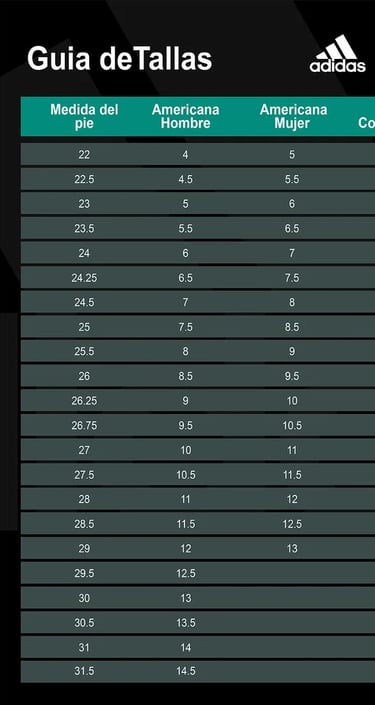 Te recomendamos elegir el calzado mirando tu talle en CM (centímetros) o comprar mirando tu talle en US o UK en otro par que tengas de la misma marca. Los CM y demás equivalencias figuran en la tabla automática que se despliega al pasar el cursor por cada talle argentino.