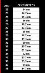 Te recomendamos elegir el calzado mirando tu talle en CM (centímetros) o comprar mirando tu talle en US o UK en otro par que tengas de la misma marca. Los CM y demás equivalencias figuran en la tabla automática que se despliega al pasar el cursor por cada talle argentino.